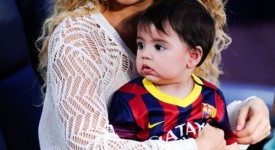BARCELONA, SPAIN – SEPTEMBER 14: Shakira and her son Milan look on prior to the La Liga match between FC Barcelona and Sevilla FC at Camp Nou on September 14, 2013 in Barcelona, Spain. (Photo by David Ramos/Getty Images)
